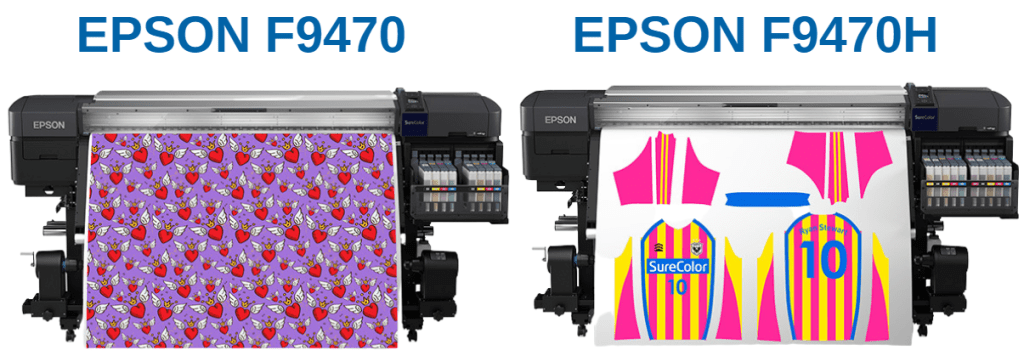Let’s move into the applications portion of this video. With these two models, the F9470 and F9470H create their own application differences with the H model including the Fluorescent yellow and fluorescent pink option. Which is great for sports apparel and some really cool custom fabric designs. When comparing the Epson and HP CMYK models, we find that they are both great options for professional-quality apparel, soft signage, décor and more. One caveat is that the HP has the option to print direct to fabric. The direct option is best suited for flag and back lit application due to the non-stretch of these materials. One thing we can agree on when talking about these two models, is that we do not recommend them for hard or ridged substrate applications. Epson has a different solution for dye sub on hard substrate, which would be their F6470 or F7200 models.