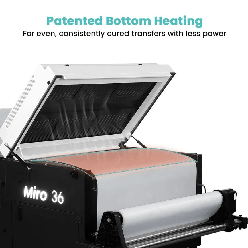 The Miro 36 DTF Shaker was developed in tandem with Epson’s engineering specs for the G6070. Every detail from the input tray height to the curing system was designed for seamless integration.