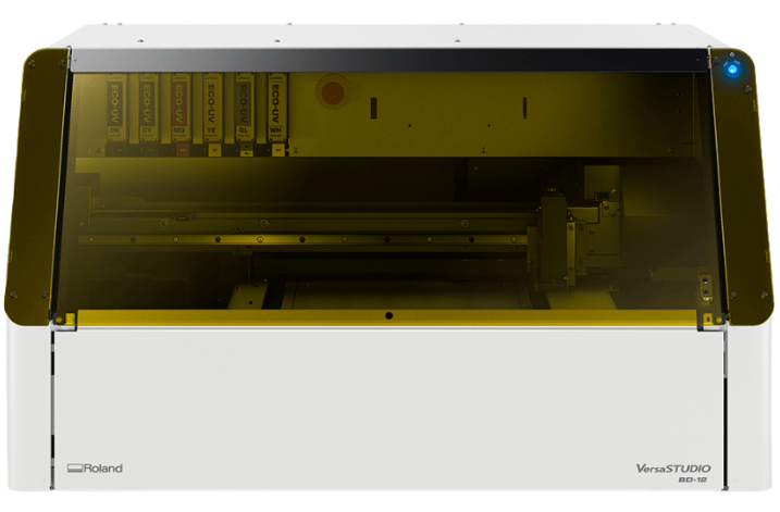 Roland calls the BD-12 an entry-level model, but after using it in real production environments, it’s clear that this printer performs far above what most people expect from a desktop unit. The compact footprint fits easily on a desk or workbench, yet the print area is a generous 8.2 by 12 inches. Even more impressive, the printer can accept objects up to 9.4 by 13.1 inches, with a maximum object weight of 11 pounds and a maximum height of 4 inches.
