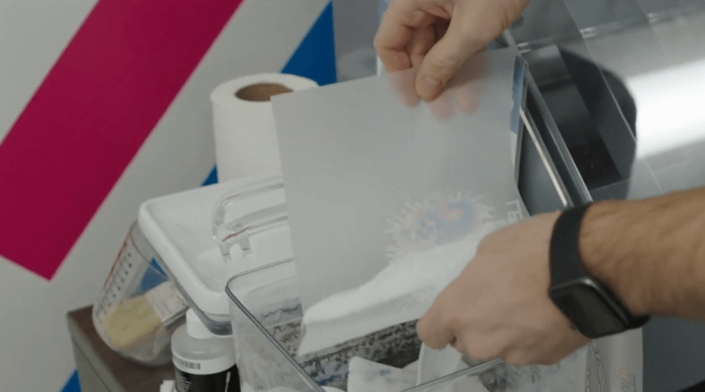 Once your design is printed, timing matters. The ink needs to stay wet for the next step, so don’t wander off just yet.